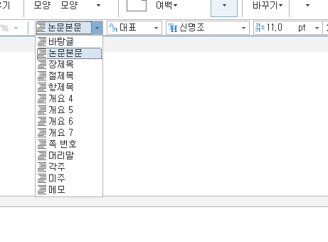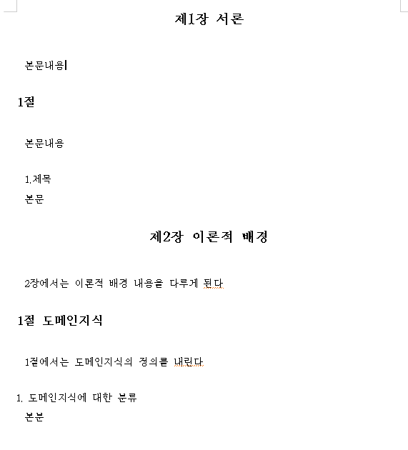 여기서는 Ctrl+2는 논문본문, Ctrl+3은 장제목이 됩니다.