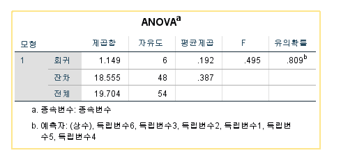 그룹 내의 자유도는 (전체 관찰 수 - 투입된 독립변수 수 - 1) 55-6-1 = 48