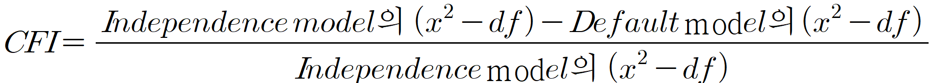 그래서 이번 포스팅에서 자주 사용되는 모형적합도중 CFI, TLI, RMSEA를 직접 계산하는 방법에 대해 알아보겠습니다.