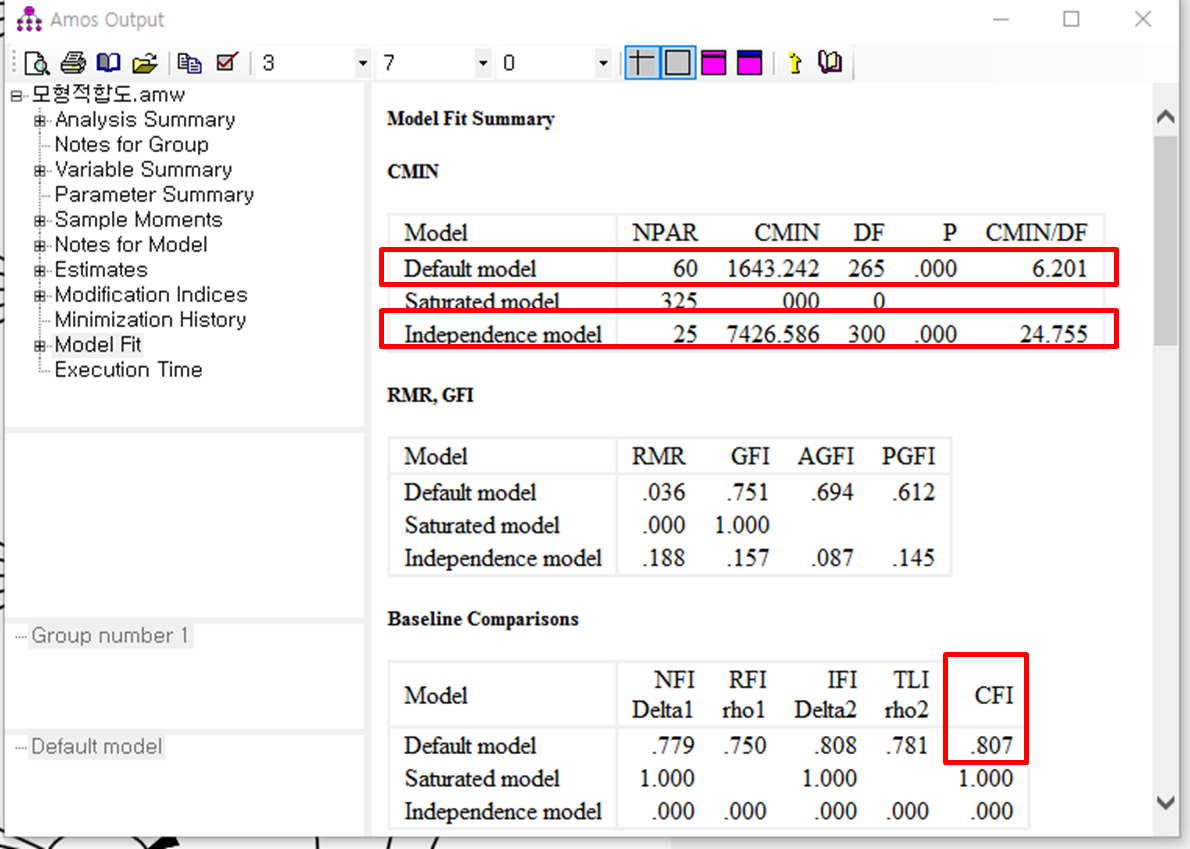 먼저 CFI값을 확인해봅시다. .807로 나왔습니다.