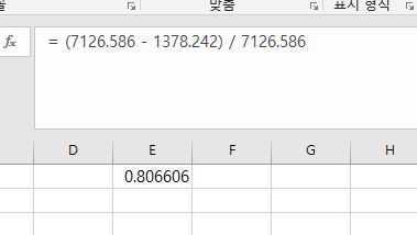 (7126.586 - 1378.242) / 7126.586 = 0.806606