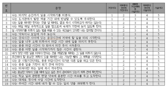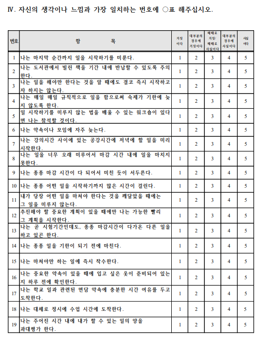실습에서는 지연행동 관련 문항만을 찾아볼겁니다.