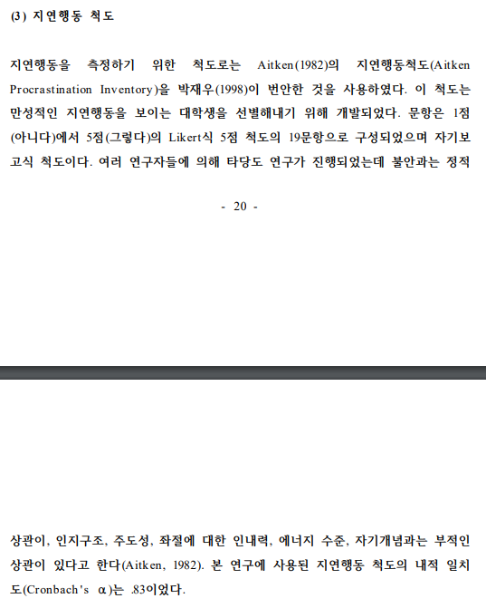 지연행동은 해야 할 일을 불필요하게 미루는 것을 말하는데 보통 연구자들은 공부를 미루는 학업적 지연행동을 다루거나 일상적 행동에서 지연행동을 주로 다룹니다.