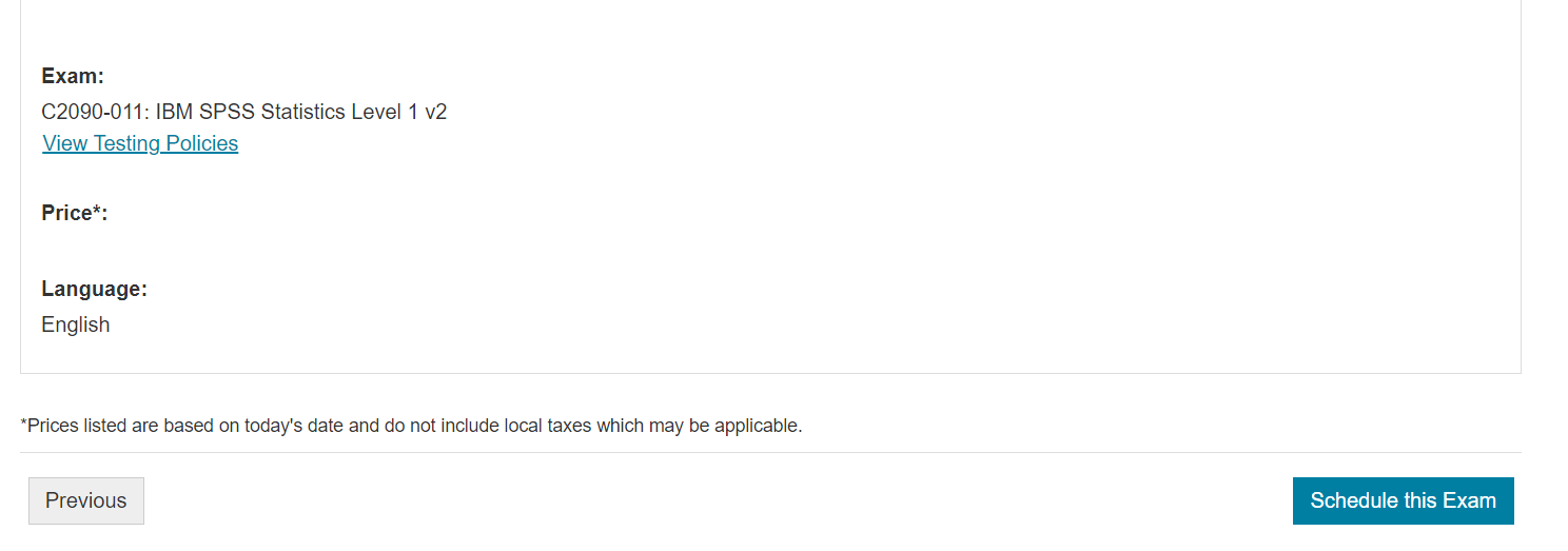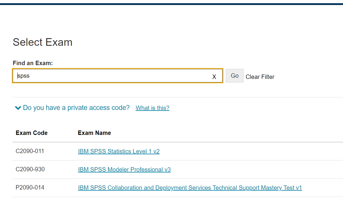 로그인을 하여 View Exams버튼을 누른뒤에 SPSS를 검색하여