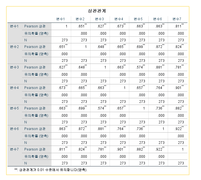 하지만 실제논문에서는 상관계수를 소수2자리까지만 사용합니다.