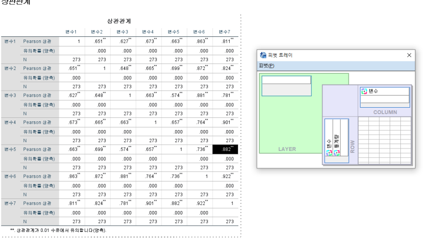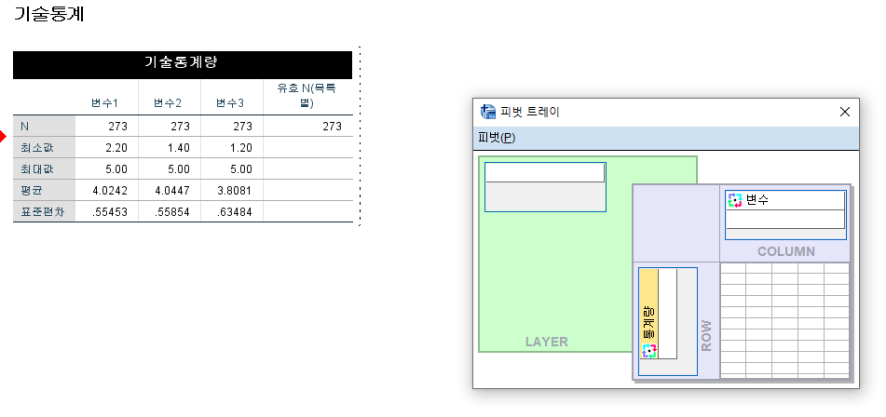 피벗트레이 기능은 분석결과창의 모양을 사용자가 임의대로 편집할 수 있는 기능입니다.