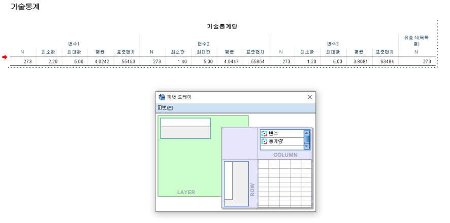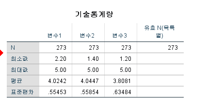아무 통계분석결과나 상관없습니다만 우선은 위에 나와있는 기술통계로 사용방법을 알아보겠습니다.