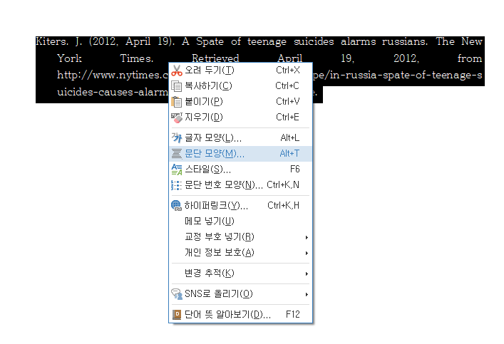| 한글에서 참고문헌 가나다순으로 정렬하는 법 (1) | 2023.04.04 |