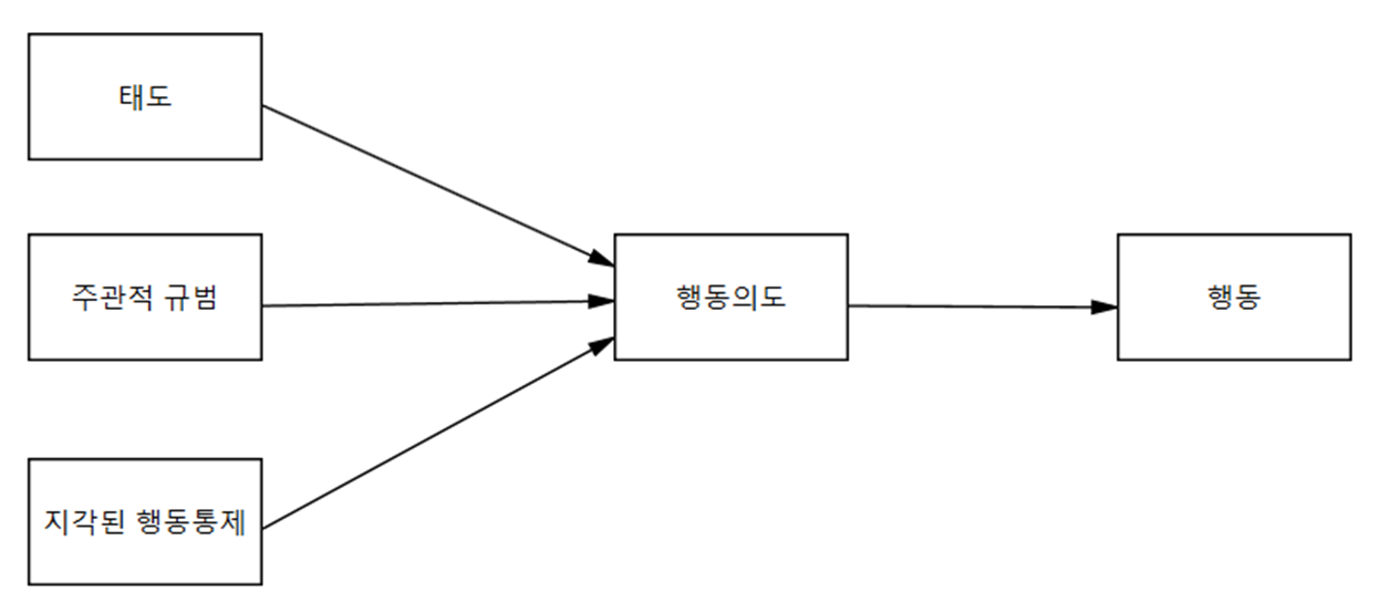 - 태도 (Attitude): 개인이 특정 행동을 수행할지 여부에 대한 긍정적 또는 부정적 평가입니다.