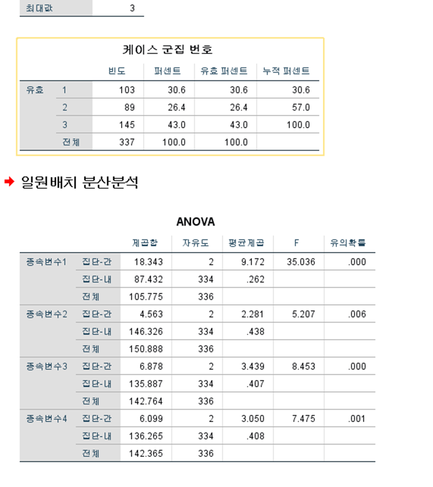 군집에 따른 종속변수의 차이가 있는 것을 확인할 수 있습니다.