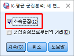 소속군집을 체크하고 계속버튼을 클릭합니다.