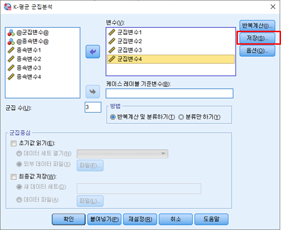 군집변수를 생성해야하기 때문에 저장버튼을 클릭합니다.