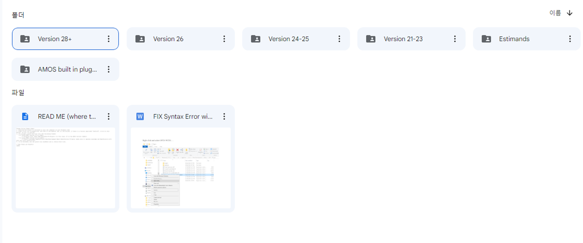 그리고 간혹 Error 메시지가 뜨는 경우가 있는데 이런 경우에는 현재 AMOS분석 파일 저장되어 있는 폴더를 확인하시면